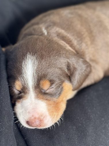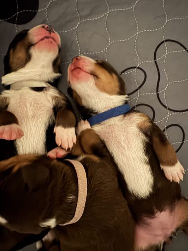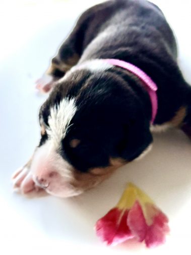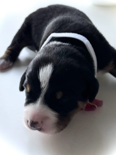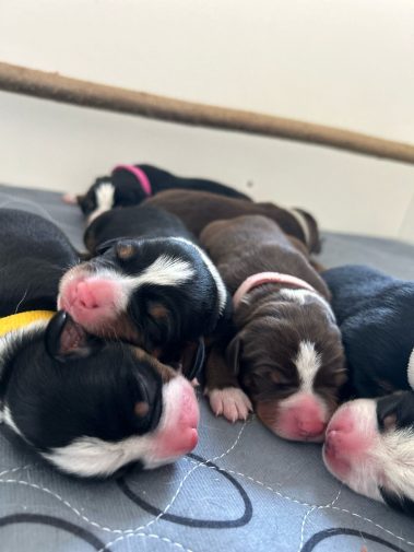 Schon fast eine Woche seit dem letzten Eintrag – die Tage fliegen dahin… Unsere Appenzeller Hundebabies werden immer aktiver. Seit dem Wochenende haben alle die Äuglein geöffnet und üben nun fleißig das Laufen – noch etwas wackelig, aber unerschütterlich. Sitzen können sie jedenfalls schon. Das sieht sehr süß aus. 🙂